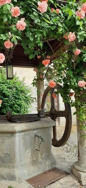 Nella corte vi è un grande pozzo protetto da una tettoia sostenuta da quattro pilastrini cui sono avvinte piante di rosa oggi in piena fioritura. Oltrepassato il portone d'ingresso è impossibile non notarlo. Tuttavia il signor Ermanno, persona che ha superato da un po' gli ottant'anni, preferisce parlarci dell'enorme cantina, sottostante l'edificio ed il cortile, della quale descrive l'uso che se ne faceva: ci indica anche alcune finestrelle di aerazione. Dell'edificio, progettato per essere fruito prevalentemente d'estate, quindi aperto e arioso, fa osservare le modifiche effettuate, in varie epoche, per contrastare il freddo. Quando, finalmente autorizzati dalla Soprintendenza, potranno iniziare i lavori di restauro, bisognerà tenere conto anche del particolare colore giallo oro che affiora tra gli strati più profondi dell'intonaco: è costituito dalla mescolanza di calce viva con la sabbia dell'Adda.
