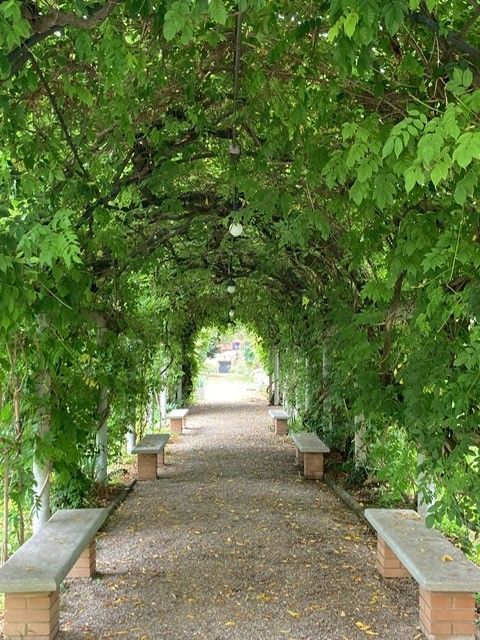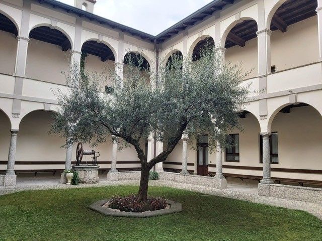 L'eleganza del chiostro, dalla forma quadrata, il pozzo decentrato, le colonne marmoree al piano terra e fatte di laterizi all'ordine superiore. Il lungo berceau , il quale, reggendo un fitto glicine, forma una galleria. Il grande, quindi vecchissimo, albero di tasso in fondo al giardino.