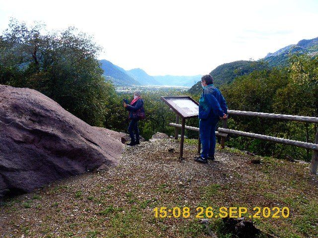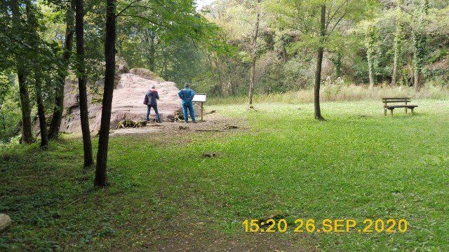 Al momento di uscire, quando sono oramai le 16, acquisto, al prezzo di cinque euro, delle piantine e un opuscolo, molto ben fatti, che mi sarebbero stati utili se li avessi avuti in mano durante la visita. Talvolta si fanno le cose al contrario. Prima di accedere al parco delle Luine, per il pranzo, ci eravamo fermati al "Cantuccio" di Angolo Terme, un esercizio dignitoso, in quel momento con scarsi avventori, dove, in tre, avevamo speso € 48,65. Poco più di un paio d'ore della mattinata, cominciando dalle 10, l'avevamo dedicata ad un giro, a piedi, tutto intorno al lago Moro. Si parte e si arriva a Capo di Lago che è una minuscola, graziosissima, frazione del comune di Darfo. Saranno, è una stima questa, circa tre chilometri in tutto. Il sentiero che affianca il lato sud, sassoso e dal fondo irregolare come sono spesso quelli di montagna, corre basso basso tanto da toccare quasi l'acqua. Poi la recinzione di una proprietà privata obbliga, chi va per quel sentiero, ad alzarsi di quota fino a raggiungere una strada asfaltata. Da là il passo diventa agevole e la veduta straordinaria. La bella, luminosa, giornata, mette in risalto il bacino lacustre e la fitta, variegata, vegetazione che lo circonda. Magnifico. Il lago Moro è parte di un Parco locale che occupa, nella bassa valle Camonica, territori che, dal punto di vista amministrativo, fanno capo ai comuni di Darfo Boario Terme e Angolo Terme. Oltre alla conca del lago Moro e all'area archeologica di Luine, che abbiamo, come già detto, visitato, comprende anche le località di Sorline, Castellino e Monticolo dove, spero, avrò modo di andare un giorno o l'altro. L'influenza sia del clima mediterraneo del lago d'Iseo che di quello glaciale dell'Adamello contribuiscono a determinare la particolare varietà della vegetazione di quest'area. Negli anni ho visitato alcuni tra i siti considerati dall'UNESCO, già nel 1979, patrimonio mondiale nell'ambito dell' "Arte rupestre della valle Camonica". Questo di Luine si aggiunge, alla mia esperienza, tra gli altri, a quello di Naquane dalle vaste superfici rocciose incise e al sito di Cemmo, presso Capo di Ponte, dove due grandi massi istoriati e i resti di un recinto testimoniano la presenza di un antichissimo santuario camuno che fu distrutto dai cristiani al loro avvento. Là è possibile che alcuni, come è capitato anche a me, siano colti da una sorta di vertigine proveniente dall'inafferrabile profondità del tempo che ci separa da popoli interi, la cui civiltà si è sviluppata nel corso di migliaia di anni, dei quali sono giunti a noi soltanto esili graffi sopra dei grandi sassi. Partiti da casa alle 8:30 siamo rientrati alle 17,45 dopo avere percorso, senza incontrare difficoltà, 193 Km.