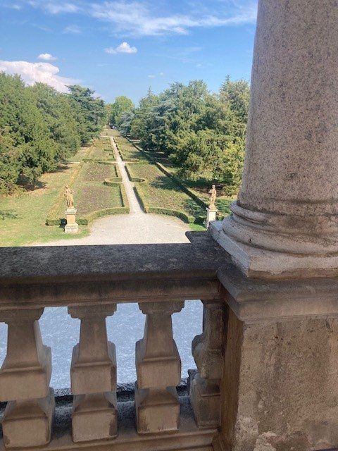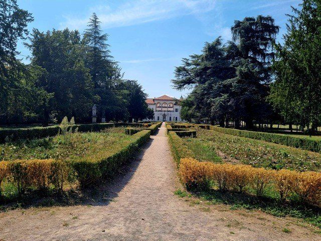 Vasto, ma non tanto da far perdere a chi lo percorre la percezione del confine, organizzato su file parallele di alberi, ciascuna di specie diversa, questo giardino del Palazzo Arese Borromeo di Cesano Maderno, è disposto in modo da formare quello che è detto cannocchiale. La vista del visitatore è condotta dalla grande vasca della fontana a gradoni, sormontata da dromedari di pietra, simboli della casata, fino alla magnifica loggia che corona la villa. E viceversa a seconda della posizione dell'osservatore.