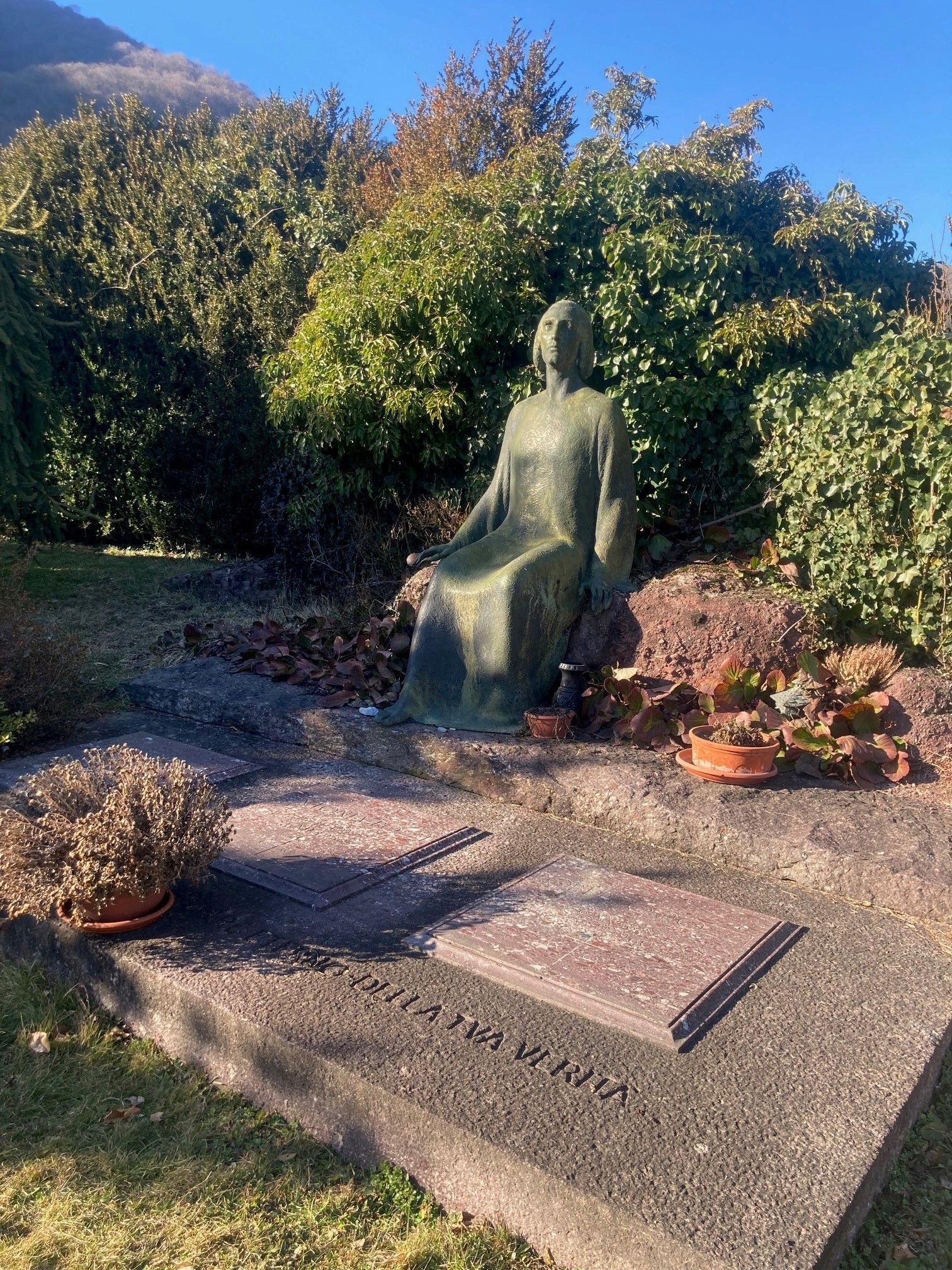 Lei aveva scritto: "Desidero essere sepolta a Pasturo sotto un masso della Grigna, fra cespi di rododendro" . Mi pare che sia stata accontentata soltanto in parte dato che un masso qui non c'è.