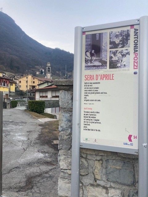 La casa di Antonia Pozzi, in via Manzoni, da poco rimessa a nuovo, col suo intonaco dal colore giallo spiccato e per le sue dimensioni, risalta rispetto alle abitazioni assai più modeste che formano il paese antico. Acquistata dal padre di Antonia, Roberto, per farne un luogo di vacanza, venne lasciata in eredità dalla madre della stessa Antonia, alle suore Preziosine, che l'assistettero nei suoi ultimi anni. Adesso, oltre alle stesse suore, ospita anche delle famiglie. Dalle targhe esposte all'esterno non capisco se vi sia la possibilità di visitare le stanze dove Antonia Pozzi visse e compose molte delle sue opere.