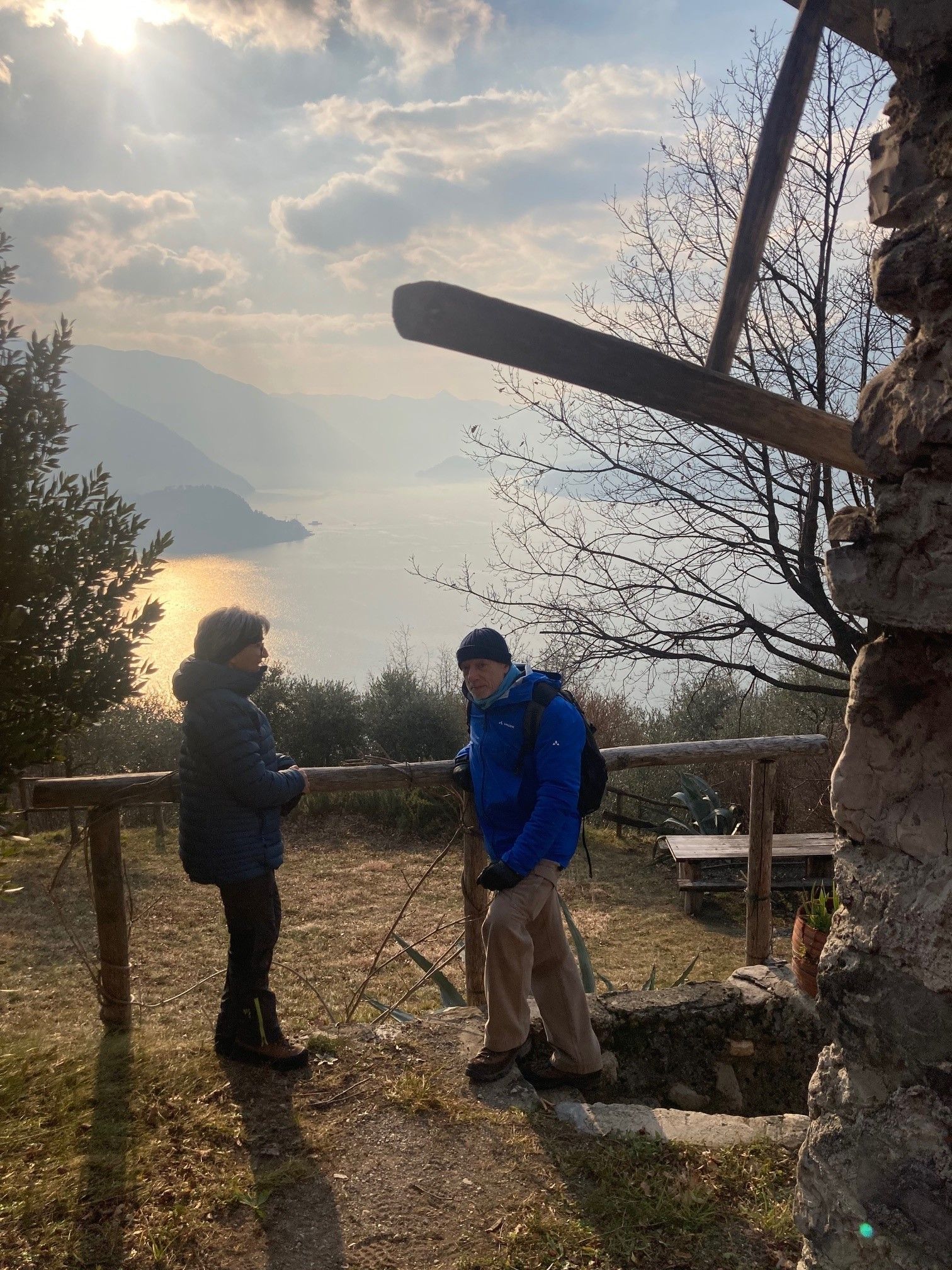 Il primo sentiero che imbocchiamo ci porta giù, verso Varenna. Ce ne accorgiamo subito, torniamo, troviamo quello giusto.