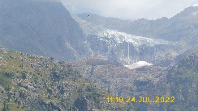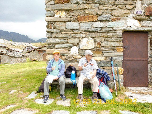 Sui nostri telefoni, che ricevono solo a tratti il segnale, giunge una fotografia scattata da qualcuno degli altri tre della nostra compagnia, presso il rifugio Mitta. Poi, dopo qualche tempo, i nostri, ci dicono che ritarderanno il ritorno di parecchio. Infine ci trasmettono anche l'immagine dell'insegna che è posta sul rifugio 'CAI di Carate' a metri 2.636 di altitudine.