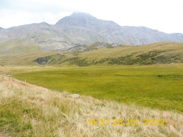 Lucilla fa la mamma: richiama i suoi figlioli ogni volta che le sembra si avvicinino troppo al bordo del sentiero. Sostiamo al rifugio Cà Runchash, che vale due casette, per un caffè. Anche al Cristina, altre due casette, ci limitiamo a prendere del caffè dato che abbiamo con noi i panini che ci ha forniti il rifugio dal quale proveniamo. Il pizzo Scalino ha la vetta nascosta, nebbie coprono anche i più lontani Disgrazia e Bernina. Più preoccupante è un nuvolone nero che avvolge il Sasso Moro il monte che incombe, al di là del lago inferiore, proprio sopra il rifugio Zoia presso il quale dobbiamo tornare. Il sole va e viene. Io avrei tirato per la via più breve e lo dico chiaro. Tuttavia prevale la scelta di Paolo di salire verso il passo di Campagneda nei dintorni del quale vi sono dei laghetti. Ne raggiungiamo alcuni quasi privi d'acqua, oramai delle torbiere. Torniamo quando Lucilla si stanca di oltrepassare i fili elettrificati che delimitano i prati dove pascolano le mucche.
