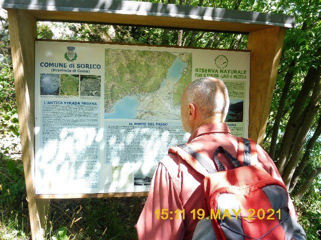 Più volte notiamo le indicazioni per san Fedelino, che si trova, a seconda della posizione dei cartelli, tra le due o tre ore da qui. Si tratta di un minuscolo santuario medievale, un eremo all'origine, che certo torneremo a visitare. Ma partendo non da qui ma da Samolaco seguendo una traccia pianeggiante, che fiancheggiando il Mera, richiede solo un'ora per essere percorsa. A Sòrico ci siamo presi tutto il tempo che occorre: chi per una birra, chi per un gelato. Altri soltanto per sostare. Infatti, giunti là alle 15:35 ne siamo venuti via alle 16:05. La piazza di quel paese è un luogo piacevole, è piuttosto ampia, con la chiesa antica, il municipio moderno, le scuole, le panchine, l'albergo. Peccato che i platani che vegetano là siano stati orrendamente mutilati e per l'intitolazione a un personaggio che volle l'intervento nella Grande guerra. A parziale compensazione il monumento ai caduti dà maggiore rilievo ai morti della Seconda guerra mondiale, e ai fatti ad essa collegati che in questo luogo avvennero, piuttosto che ai caduti della Prima.