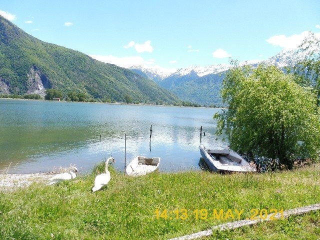 Il luogo è magnfico: acque, cime bianche, canneti, cigni.